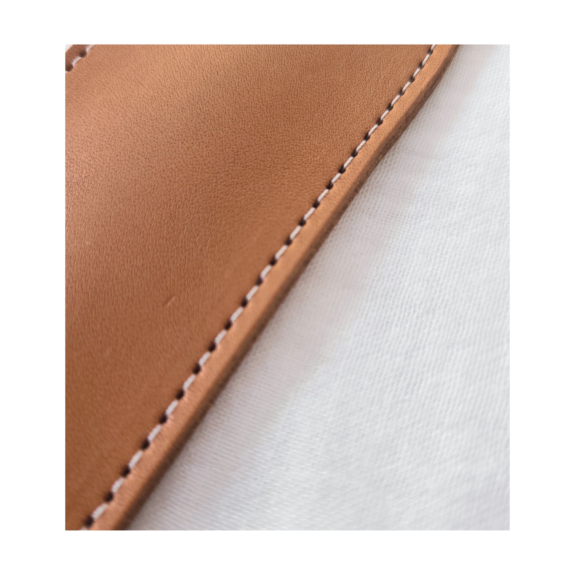 キャメル地にホワイトの刺繍を施したナチュラル仕上げ。