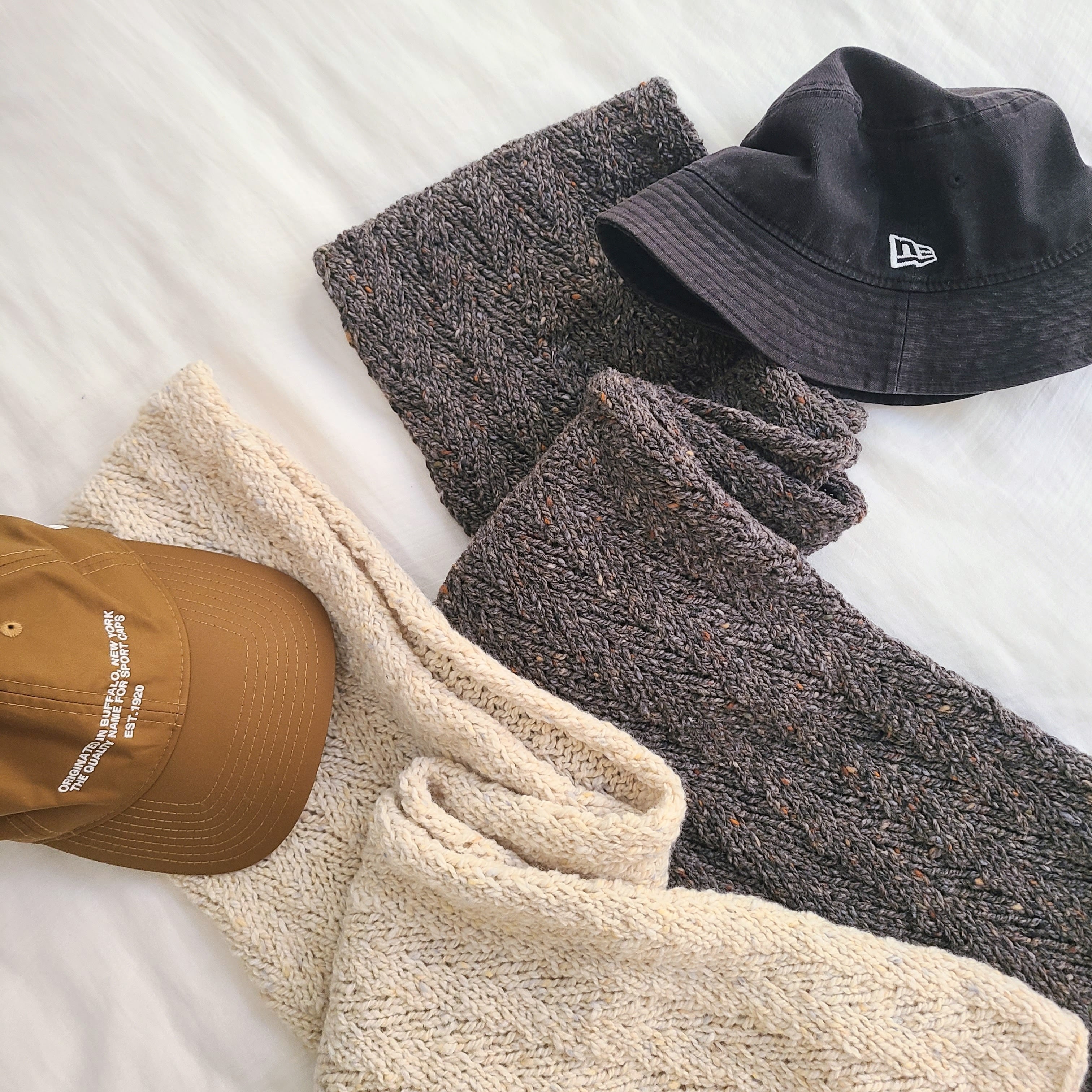 ユニセックスで使えるヘリンボーン模様のマフラー。